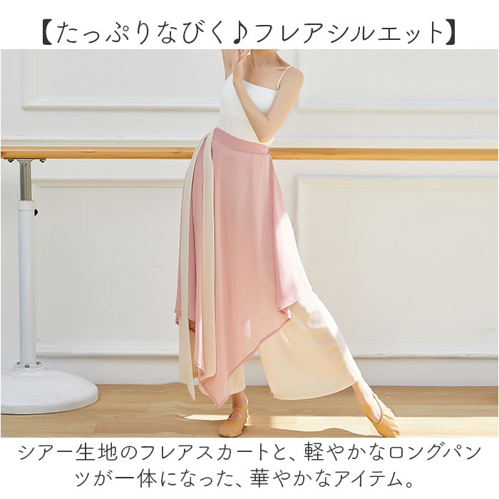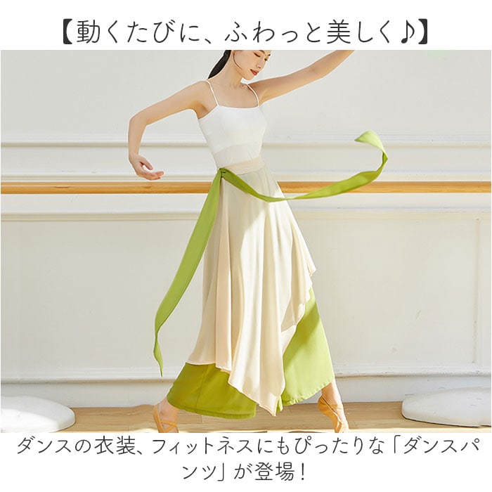 | 商品説明 | 【動くたびに、ふわっと美しく♪】ダンスの衣装、フィットネスにもぴったりな「ダンスパンツ」が登場!【たっぷりなびく♪フレアシルエット】シアー生地のフレアスカートと、軽やかなロングパンツが一体になった、華やかなアイテム。【動きに合わせて美しく揺れる♪】ふんわり生地が、動きに合わせて美しいラインを描く。うっとりするエレガントさが魅力。【好印象のバイカラー仕上げ】上品なくすみカラーを使ったバイカラーデザイン。いろんなイベントやシーンにマッチ。【軽い着心地で自由な動きを】幅広の優しいゴムウエスト。締め付け感がなく軽い着心地なので、身体の柔軟性を邪魔しない◎【ムレにくく通気性がバツグン!】汗をかいても快適さをキープする、薄手の生地がGOOD。ロング丈でも熱がこもらない。【足さばきの良さも魅力】アシンメトリーの生地で、足さばきにも配慮。動きやすさと表情の豊かさを両立。【練習着から発表会、デイリーにも◎】ダンスなどのイベントの衣装、ヨガなどのフィットネス、ルームウエアなど使い方は様々☆ |