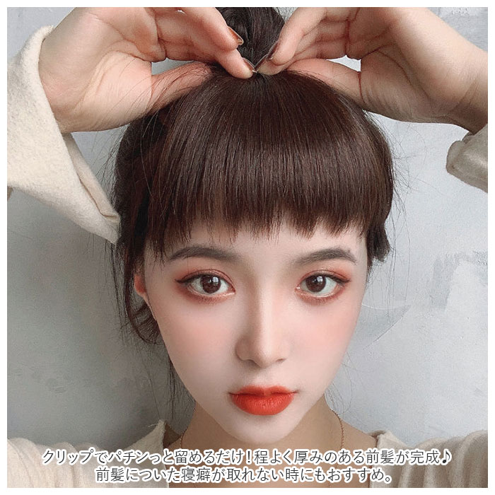 | 商品説明 | ワンタッチで手軽にイメチェンできる前髪ウィッグ♪柔らかく自然な艶感のある人毛を採用。クリップでパチンっと留めるだけ!程よく厚みのある前髪が完成♪コテやヘアアイロンを使ってアレンジも可能◎前髪についた寝癖が取れない時にもおすすめ。 |