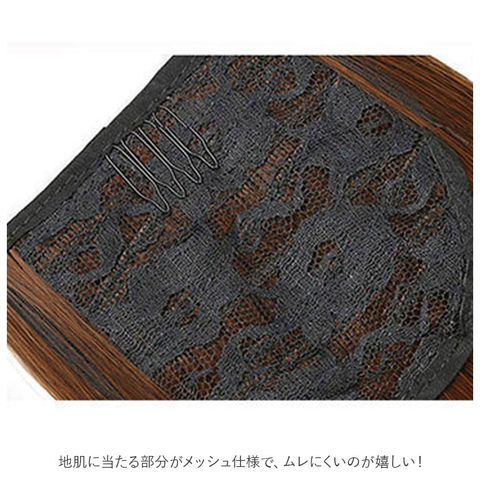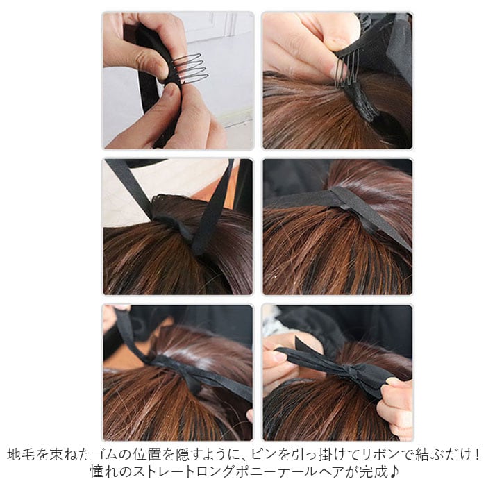 | 商品説明 | 簡単ヘアアレンジが叶う!ストレートポニーテールウィッグ。地毛を束ねたゴムの位置を隠すように、ピンを引っ掛けてリボンで結ぶだけ!憧れのストレートロングポニーテールヘアが完成♪ツヤ感を抑え、馴染みやすい人工毛を使用。地肌に当たる部分がメッシュ仕様で、ムレにくいのが嬉しい!誰でも手軽にイメージチェンジできるアイテム。 |