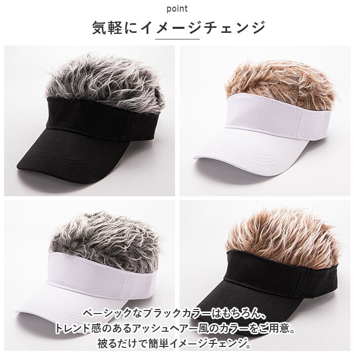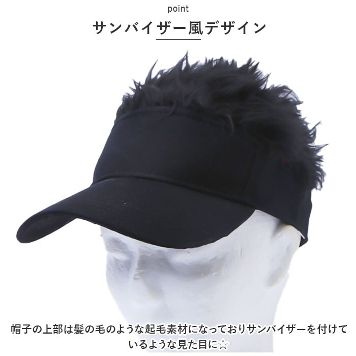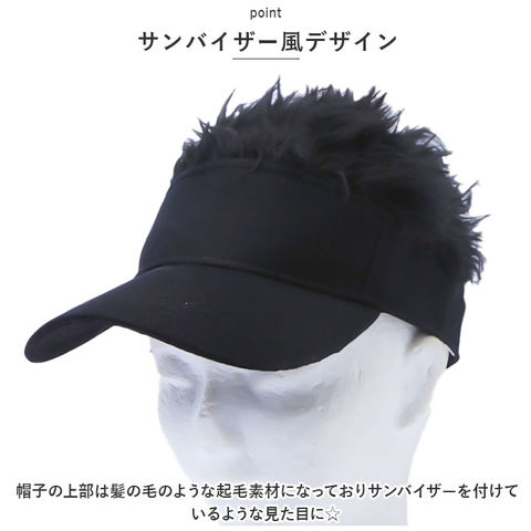| 商品説明 | まるでウィッグのような見た目の帽子が登場♪【サンバイザー風デザイン】帽子の上部は髪の毛のような起毛素材になっておりサンバイザーを付けているような見た目に☆【つば付き】日差しのまぶしさを軽減するつば付き。【気軽にイメージチェンジ】ベーシックなブラックカラーはもちろん、トレンド感のあるアッシュヘアー風のカラーをご用意。被るだけで簡単イメージチェンジ。【面ファスナーテープ付き】後頭部のテープベルトでフィット感の調節が可能!【ダンスやコスプレの衣装に】普段使いはもちろん、ダンスやコスプレの衣装小物として使うのもおススメ♪ |