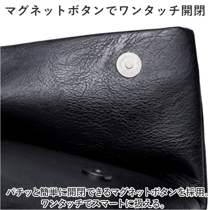 | 商品説明 | 滑らかで肉厚なレザーライクが魅力。大人スタイルにマッチする「クラッチバッグ メンズ」が登場。【滑らかで肉厚な作りが魅力】滑らかなレザーライクを折り曲げて、肉厚な作りを実現。シンプルに見せる上品さが魅力。【ミニマルにお出かけできる!】荷物を少なくまとめてスタイリッシュにお出かけしたい日に!ミニマルな方にオススメ☆【ほどよい重厚感でしっかり高見え】レザーライクが、ほどよく重厚感を演出。しっかり高見えして、大人も満足の仕上がり。【マグネットボタンでワンタッチ開閉】パチッと簡単に開閉できるマグネットボタンを採用。ワンタッチでスマートに扱える。【ポケットつきで整理整頓】小物を分けて収納できるよう、メインと背面にポケットを配置。バッグ内を整理整頓できる。【ポケット仕様】メイン収納:ファスナーポケット×1、オープンポケット×2背面:ファスナーポケット×1 |