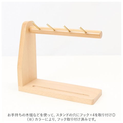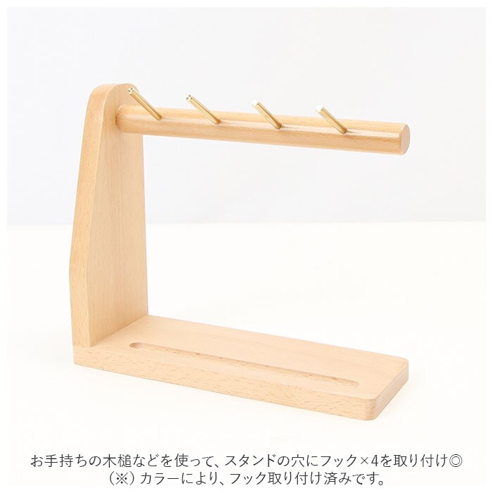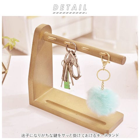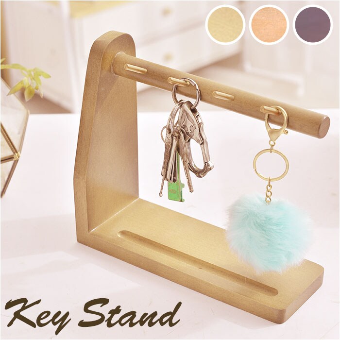 | 商品説明 | 迷子になりがちな鍵をサッと掛けておけるキースタンド。お手持ちの木槌などを使って、スタンドの穴にフック×4を取り付け◎フックは4本あるので、ご家族間での鍵の管理がラクラク。底面には腕時計などの小物を置いておけて便利。ナチュラルで温かみのある木製素材。インテリアに馴染みやすいのもポイント♪ |