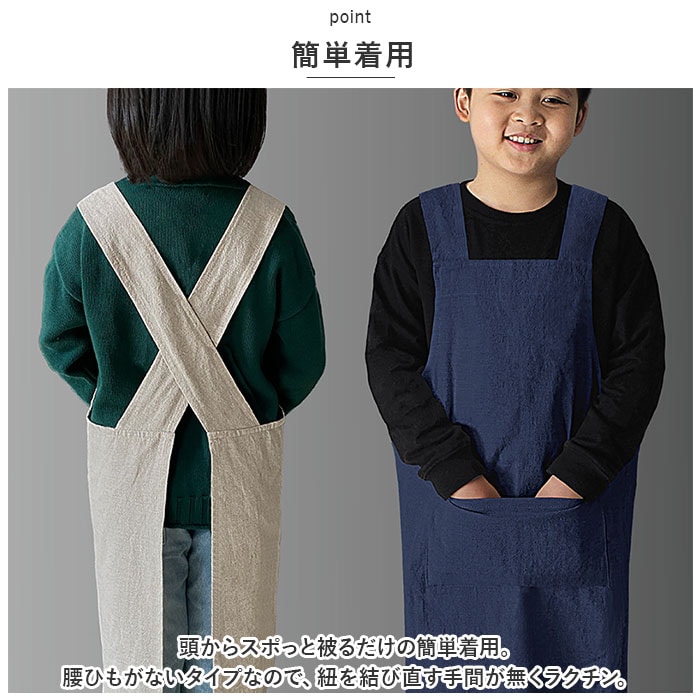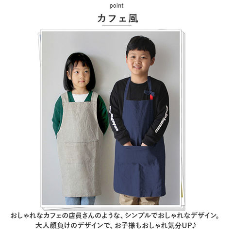 | 商品説明 | カフェ風おしゃれエプロン♪スポっと被るだけの簡単着用でお子様も嬉しい「エプロン キッズ」が登場。【簡単着用】頭からスポっと被るだけの簡単着用。腰ひもがないタイプなので、紐を結び直す手間が無くラクチン。【カフェ風】おしゃれなカフェの店員さんのような、シンプルでおしゃれなデザイン。大人顔負けのデザインで、お子様もおしゃれ気分UP♪【ポケットあり】フロント部分には大きめなポケットあり!メモをいれたり、タオルをいれたりと便利。【自然な風合い】自然な風合いの生地感。シワがあっても違和感がなく、こなれた印象。お手入れが簡単なのも嬉しいポイント。【ひっかけて収納◎】内側にはひっかけ紐つき!使用後はひっかけて収納できる、使いやすさにも配慮したアイテム。【柔らかい生地】麻とコットンを使用した柔らかな触り心地。お子様のお肌にも負担なく使える◎【使えるシーンがたくさん】毎日のお手伝いはもちろん、学校での授業や絵画教室などでも活躍。ひとつあるといろいろなシーンで使用可能。 |