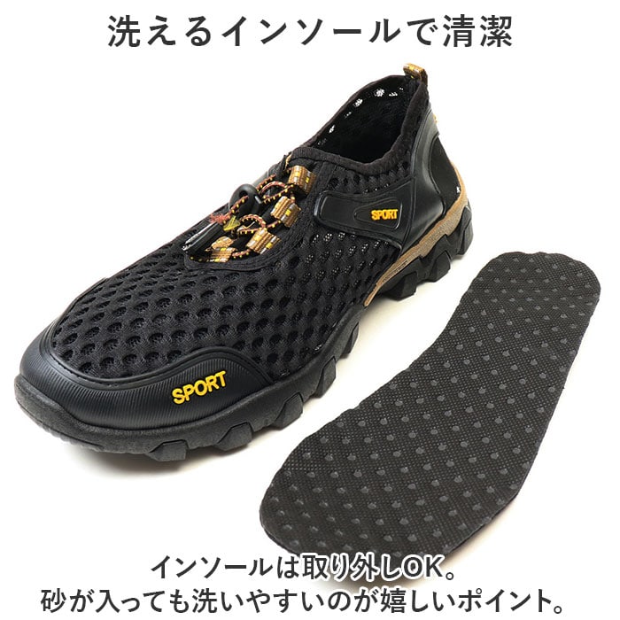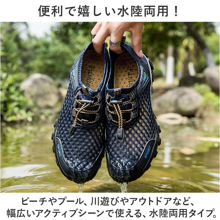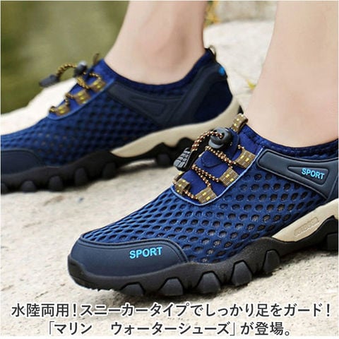 | 商品説明 | 水陸両用!スニーカータイプでしっかり足をガード!「マリン ウォーターシューズ」が登場。【便利で嬉しい水陸両用!】ビーチやプール、川遊びやアウトドアなど、幅広いアクティブシーンで使える、水陸両用タイプ。【スニーカータイプでしっかりと保護】ビーチの岩や川の石など、危険が多い環境でもしっかり保護してくれる安心のスニーカータイプ!【抜群の通気性&速乾性で快適】メッシュのアッパーは抜群の通気性でムレを防止。速乾性のある作りで濡れても乾きやすく快適♪【滑りにくく頑丈なアウトソール】アウトソールは頑丈な作りで、不安定な水の中でも滑りにくいよう足元をしっかりサポート!【アジャスターでぴったりフィット】ゴム仕様の靴紐をキュッと絞れるアジャスター付き。フィットするので動きやすい◎【洗えるインソールで清潔】インソールは取り外しOK。砂が入っても洗いやすいのが嬉しいポイント。【タウンユースもできるおしゃれさ】マリンタイムだけでなく、タウンユースもできるシンプルなデザインが魅力。 |