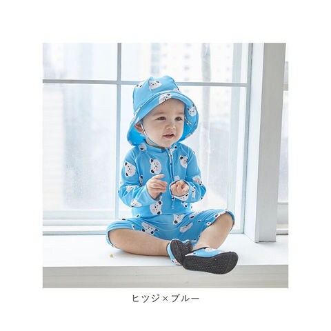 水着 キッズ キャップつき pmykswim005【ヒツジ×イエロー】【10(120-130cm)】