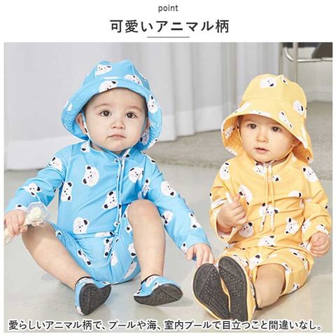| 商品説明 | 幼児向けの可愛い水着が登場!【可愛いアニマル柄】愛らしいアニマル柄で、プールや海、室内プールで目立つこと間違いなし。【長袖・日焼け対策】長袖のデザインで、日焼け対策にも効果的。お子様のデリケートな肌を日差しから守る♪【ロンパースタイプ】ロンパースタイプでお子様が動きやすく、ママさんも安心◎背面にハーフジップが付いており着脱も楽チン◎【バケットハット】帽子付きで、さらなる日焼け対策♪水着生地と同じ素材で作られており被ったまま着水できる◎ |