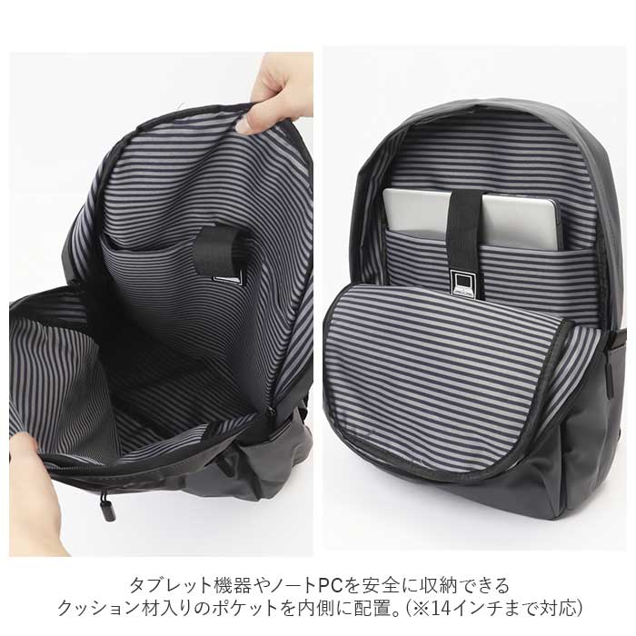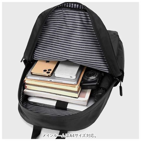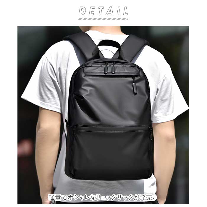 | 商品説明 | 軽量でオシャレなリュックサックが発売。メインルームはA4サイズ対応。タブレット機器やノートPCを安全に収納できるクッション材入りのポケットを内側に配置。(※14インチまで対応)通勤・通学等の普段使いから旅行等にもオススメ☆フロントには小物を分けて収納できるようファスナーポケット×2付き。両サイドのオープンポケットは、折り畳み傘やペットボトルを入れるのに便利◎背面にはキャリーケースと一緒に持ち運べるキャリーオンベルトを搭載。長さ調節可能なショルダーベルトの裏側には、長時間背負っても肩の負担を軽減してくれるメッシュ素材のクッション付き。表面生地は撥水機能のある素材を使用しているから、急な雨に降られたときも水滴がサッと拭き取れて安心。(※完全防水ではありません。)いつでもどこでも、シーンを選ばずマルチに活躍♪ |