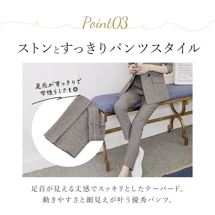 | 商品説明 | ビジネスからフォーマルまで!コスパ抜群なレディーススーツが発売♪【パンツスタイル】ボトムスはパンツスタイルだから動きやすい!外回りが多いビジネスウーマンにもおススメ◎【カジュアルにも】ジャケットには飾りポケットが2つ、ポケットが2つでかっちりしすぎないデザインだから、スニーカーなどとあわせてカジュアルにも着られるのが嬉しい♪【肩パッド入り】シルエットがキレイにキマる大きすぎない肩パッド入り♪型崩れ防止にも◎【オールシーズン仕様】ジャケット内部は袖部分まで裏地が入っているのでオールシーズン仕様なのもポイント。【お子さまの行事にも】華やかなフリルブラウスと組み合わせれば入園、入学式や卒園、卒業式のシーンにもぴったり。 |