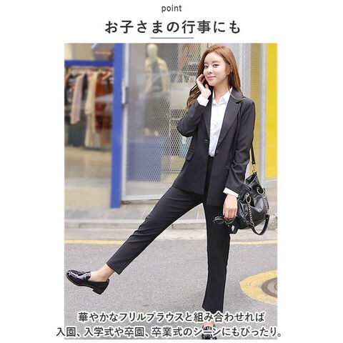 | 商品説明 | ビジネスからフォーマルまで!コスパ抜群なレディーススーツが発売♪【パンツスタイル】ボトムスはパンツスタイルだから動きやすい!外回りが多いビジネスウーマンにもおススメ◎【カジュアルにも】大きなボタンとポケットアリのデザインだから、かっちりしすぎずスニーカーなどとあわせてカジュアルにも着られるのが嬉しい♪【肩パッド入り】シルエットがキレイにキマる大きすぎない肩パッド入り♪型崩れ防止にも◎【オールシーズン仕様】ジャケット内部は袖部分まで裏地が入っているのでオールシーズン仕様なのもポイント。【お子さまの行事にも】華やかなフリルブラウスと組み合わせれば入園、入学式や卒園、卒業式のシーンにもぴったり。 |