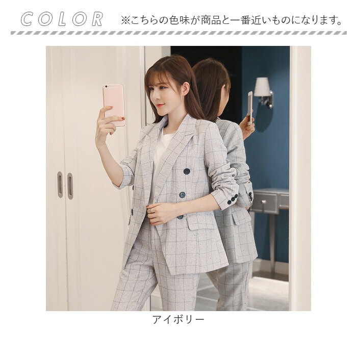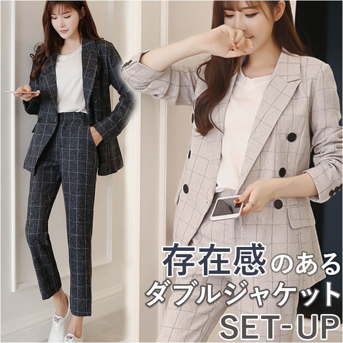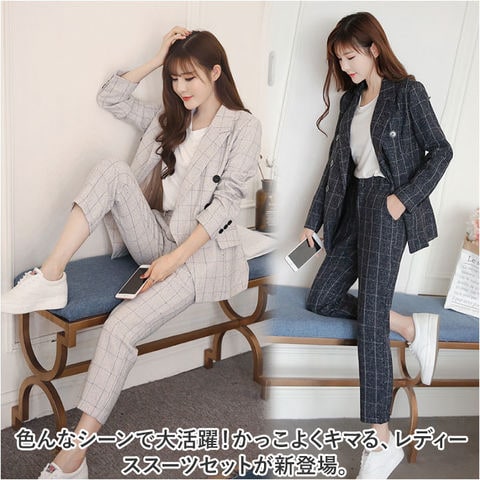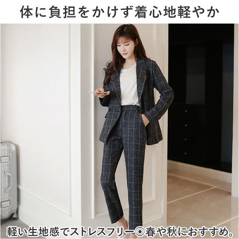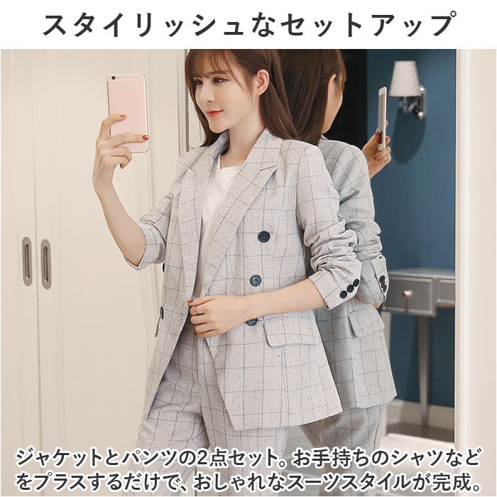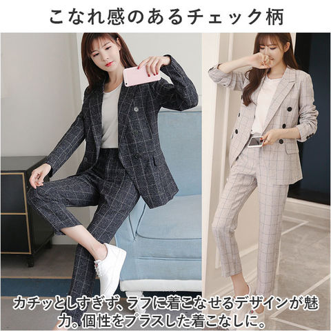 | 商品説明 | 色んなシーンで大活躍!かっこよくキマる、レディーススーツセットが新登場。【スタイリッシュなセットアップ】ジャケットとパンツの2点セット。お手持ちのシャツなどをプラスするだけで、おしゃれなスーツスタイルが完成。【存在感のあるダブルジャケット】フロントボタンが2列になったデザイン。ソフトな肩パッド入りで、美しいカタチをキープ&スッと羽織れる裏地付き。左右にはポケットを配置。【すっきり履けるロングパンツ】フロントファスナー&スライド金具で着脱でき、トップスをインした時もウエストまわりがすっきり。左右にポケット付き。【体に負担をかけず着心地軽やか】軽い生地感でストレスフリー◎春や秋におすすめ。【こなれ感のあるチェック柄】カチッとしすぎず、ラフに着こなせるデザインが魅力。個性をプラスした着こなしに。【カジュアルアレンジもOK】足首がチラッと見える丈感なので、スニーカーと合わせたスタイルも☆お好みやシーンに合わせて、シューズなどのアイテムをチェンジ! |