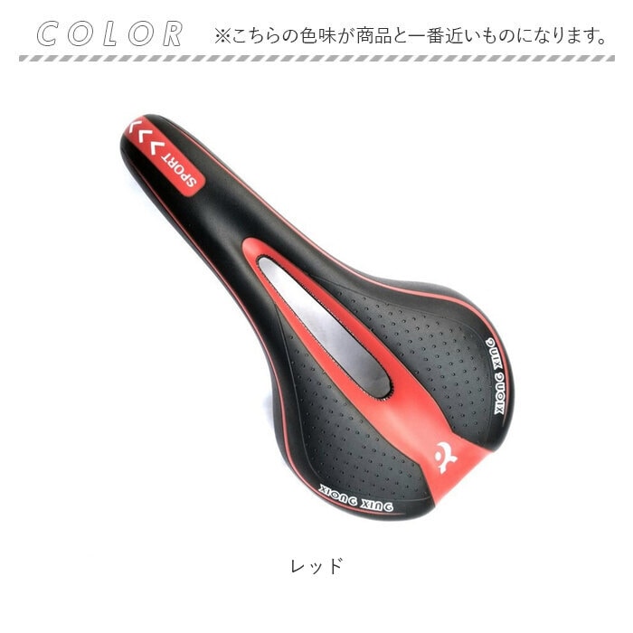 | 商品説明 | 【競技用やマウンテンバイクに】スタイリッシュなデザインのサイクリングサドルが発売♪【低反発クッションで長距離も】お尻への負担を軽減する低反発仕様のクッションで長距離の移動も痛くなりにくい☆【すべり止め付き】座面の後方に凹凸の滑り止めがついており、濡れても滑りにくく運転に集中できる。【通気性アリ】穴あき構造で蒸れにくく快適な座り心地をキープ!【スポーティかつスタイリッシュ】英字ロゴやラインなどスポーティなデザイン。マウンテンバイクなどの自転車と相性抜群!【豊富な6色展開】自転車のカラーに合わせて選べる6色展開◎ |
