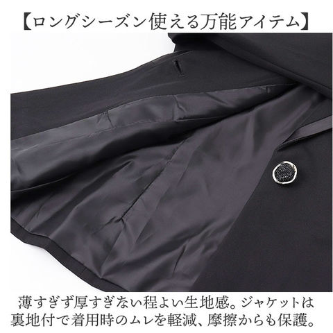 | 商品説明 | 【通勤やフォーマルシーンで活躍】まわりとちょこっと差を付けて、スタイリッシュにキマる♪レディース用「ビジネススーツ」。【上品なキレイめスタイルが完成】きちんと感のあるジャケット&パンツ。シンプルながら、ディテールにアクセントをプラス。【すっきりフォルムのジャケット】肩パッドでシルエットをキープ&エレガントなラペルデザイン。スリムに魅せる絶妙な仕立て♪【ベーシックなシングルタイプ】フロントボタンを1つ配置し、スマートな印象を演出。左右にポケットを。(※)ポケットはご自身で糸を取ってご使用ください。【シンプルなストレートパンツ】すっと落ちて足元スラリ。フロントファスナー&ボタンで着脱でき、左右にポケット付き。【ロングシーズン使える万能アイテム】薄すぎず厚すぎない程よい生地感。ジャケットは裏地付で着用時のムレを軽減、摩擦からも保護。【インナー次第で魅せ方が広がる】襟なしトップスや、デザイン性のあるブラウスもマッチ。シーンに合わせて楽しめる☆【お子さまの学校行事にもおすすめ】フォーマルシーンにも馴染むデザイン。お子さまの入学・卒業式への参加もOK! |