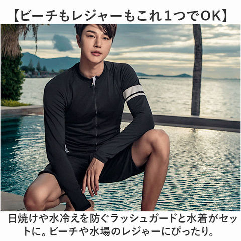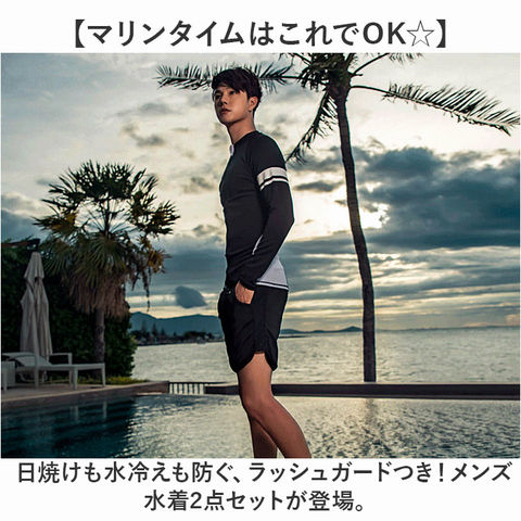 | 商品説明 | 【マリンタイムはこれでOK☆】日焼けも水冷えも防ぐ、ラッシュガードつき!メンズ水着2点セットが登場。【ビーチもレジャーもこれ1つでOK】日焼けや水冷えを防ぐラッシュガードと水着がセットに。ビーチや水場のレジゃーにぴったり。【シンプルだから幅広いシーンに対応】スポーティでシンプルなデザインは、シーンを選ばずに使用できる。リゾートもジムもOK!【よく伸びる生地でストレスフリー】伸縮性に優れた生地を使用し、アクティブな動きを邪魔しない!ストレスフリーな着心地。【着替えがしやすいセパレート】お洋服の着替えのように着られるセパレートタイプ。準備もスムーズにできる!【安心のこだわりポイント】ファスナーガード、ハーフパンツにはポケットつきと、使いやすいポイントを抑えたアイテム。 |