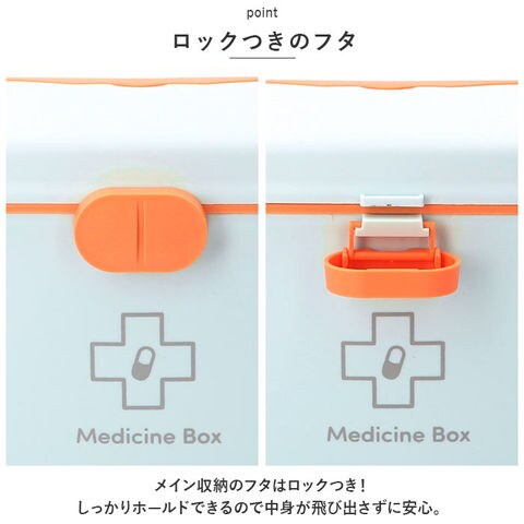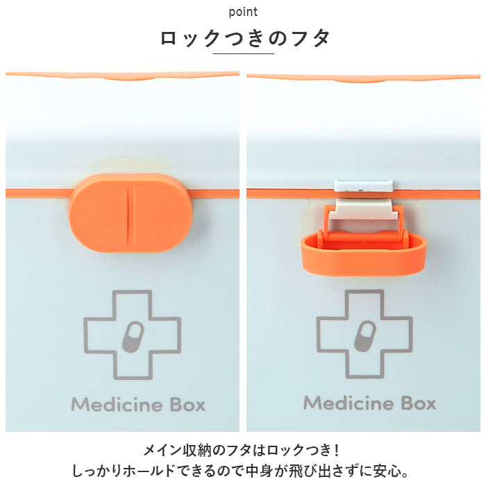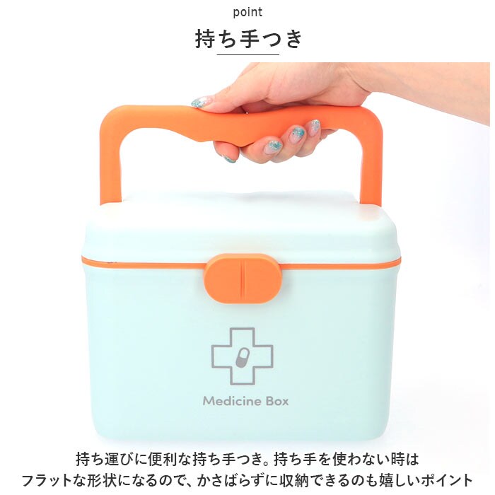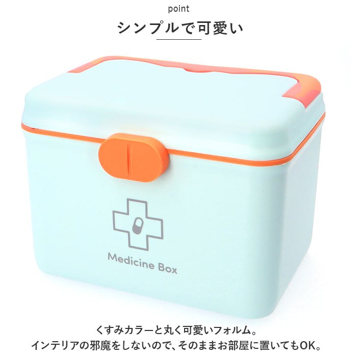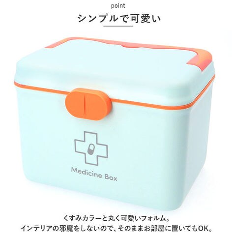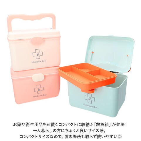 | 商品説明 | お薬や衛生用品を可愛くコンパクトに収納♪「救急箱」が登場!【ちょうど良いサイズ感】一人暮らしの方にちょうど良いサイズ感。コンパクトサイズなので、置き場所も取らず使いやすい◎【トレーつき】メイン収納には取り外し可能のトレーつき!ゴチャつきがちな消毒セットや紙テープなど小物を仕分けできるので、スッキリ整理整頓ができる◎【持ち手つき】持ち運びに便利な持ち手つき。持ち手を使わない時はフラットな形状になるので、かさばらずに収納できるのも嬉しいポイント。【ロックつきのフタ】メイン収納のフタはロックつき!しっかりホールドできるので中身が飛び出さずに安心。【シンプルで可愛い】くすみカラーと丸く可愛いフォルム。インテリアの邪魔をしないので、そのままお部屋に置いてもOK。お薬箱だって可愛い物がイイ♪ |