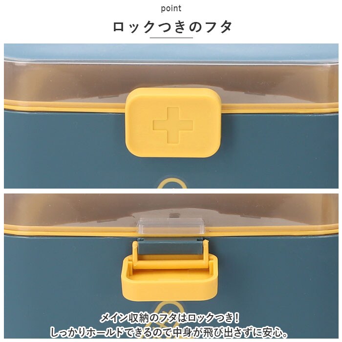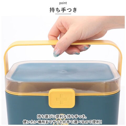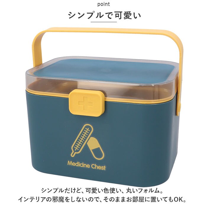 | 商品説明 | ナチュラルカラー&丸いフォルムが可愛い♪「救急箱」が登場!【シンプルで可愛い】シンプルだけど、可愛い色使い、丸いフォルム。インテリアの邪魔をしないので、そのままお部屋に置いてもOK。お薬箱だって可愛い物がイイ♪【トレーつき】メイン収納には取り外し可能のトレーつき!ゴチャつきがちな錠剤のお薬や保護テープなど小物を仕分けできるので、スッキリ整理整頓ができる◎【持ち手つき】持ち運びに便利な持ち手つき。使いたい場所までサッと片手で運べるので便利!【ロックつきのフタ】メイン収納のフタはロックつき!しっかりホールドできるので中身が飛び出さずに安心。【選べるカラー】選べるカラーバリエーション。防災用や車用、お部屋用など、用途に合わせて色分けするのもGOOD。 |
