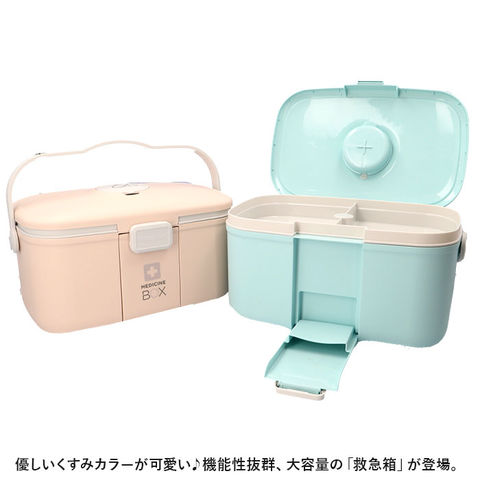 | 商品説明 | 優しいくすみカラーが可愛い♪機能性抜群、大容量の「救急箱」が登場。【機能性◎大容量◎】使いやすさにこだわった機能性に優れた救急箱。家族みんなの薬などを箱ごとまるっと収納できる安心のサイズ感。【引き出しポケットつき】ロック部分を外すと引き出しポケットが手前に開く◎絆創膏や解熱剤など、すぐに使いたいモノを収納できるので便利!【トレーつき】メイン収納には取り外し可能のトレーつき!ゴチャつきがちな消毒セットや紙テープなど小物を仕分けできるので、スッキリ整理整頓ができる◎【ミニポケットつき】フタ部分にはミニポケットつき!迷子になりがちな、細かい錠剤や救急セットの小物などを収納できる。【持ち手つき】持ち運びに便利な持ち手つき。持ち手を使わない時はフラットな形状になるので、かさばらずに収納できるのも嬉しいポイント。【ロックつきのフタ】メイン収納のフタはロックつき!しっかりホールドできるので中身が飛び出さずに安心。【選べるカラー】優しい色合いのカラーバリエーション♪どの色も可愛いので迷っちゃう! |