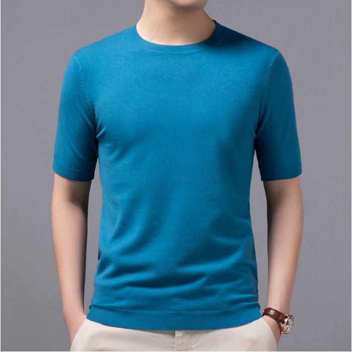 ニット セーター メンズ サマー 半袖【ブルー】【S】