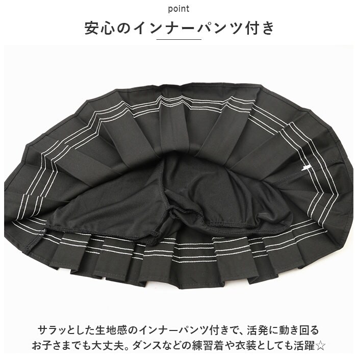 | 商品説明 | おしゃれキッズにぴったり。スクール風コーデが叶う、ミニプリーツスカートが登場。【フレアなAラインシルエット】プリーツが裾に向けて、ふんわり広がるシルエット。女の子らしい印象を演出♪【ラインデザインがアクセント】シンプルな無地カラーにラインデザインをプラス。シャツやブラウスと合わせやすく、スクール感たっぷりのアイテム。【安心のインナーパンツ付き】サラッとした生地感のインナーパンツ付きで、活発に動き回るお子さまでも大丈夫。ダンスなどの練習着や衣装としても活躍☆【自分サイズにフィット】締めつけを感じにくく、心地よくフィットするウエストゴム仕様。着脱もラクチン。【選べるカラー&サイズ】トップスを選ばず着回しやすい、落ち着きのあるカラーをラインナップ。姉妹お揃いで着られる6サイズ展開。 |