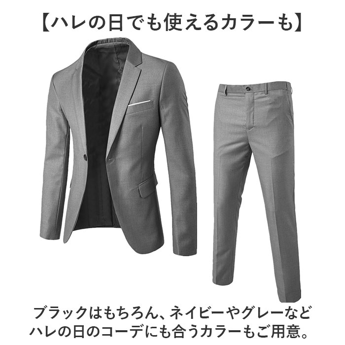 | 商品説明 | 【フォーマルやビジネスに使える】・1枚でフォーマルやビジネスに対応する便利なメンズ カラージャケットが発売。【定番のシングルスーツ】ビジネスシーンでも着用できるシングルスーツタイプ☆一枚で様々なシーンで活躍!【ベーシックな襟使い】中に着ているシャツやネクタイを選ばないよう、襟はベーシックなノッチドラペルを採用。【冠婚葬祭にもピッタリ】冠婚葬祭でも使えるように、切り込みがないノーベントタイプなのも◎【チラッと見えるポケットチーフ】左胸の飾りポケットには白のポケットチーフが縫い付けられており、ちょっとしたアクセントに【サマージャケットにも】厚すぎない生地感で熱がこもりにくく、サマージャケットとして使うのもオススメ♪【便利なポケット付き】フロントにはメモやハンカチが入るポケット付き。【ハレの日でも使えるカラーも】ブラックはもちろん、ネイビーやグレーなどハレの日のコーデにも合うカラーもご用意。【特別なお出かけに】休日コーデにカジュアルダウンして着こなすのも◎デートなど特別な日のお出かけ用に♪ |