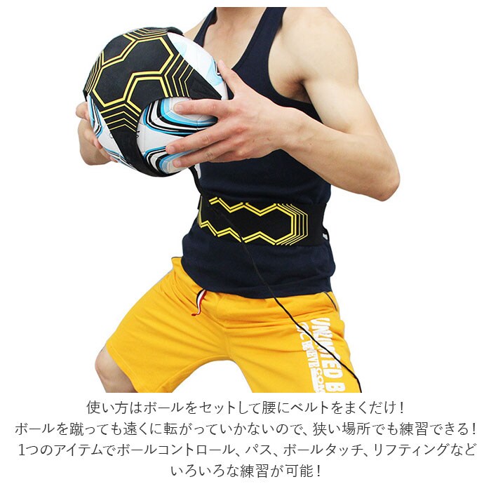| 商品説明 | 子どもから大人まで使えるサッカーの練習ができるトレーニング器具が登場。使い方はボールをセットして腰にベルトをまくだけ!ボールを蹴っても遠くに転がっていかないので、狭い場所でも練習できる!ウエストベルトは面ファスナーで簡単に着脱可能。ゴムストラップも長さ調節ができ、最大約3mまで伸びる。1つのアイテムでボールコントロール、パス、ボールタッチ、リフティングなどいろいろな練習ができる!サッカーボール3~5号まで対応。ボールに付けるアタッチメントベルトはサイズに合わせて簡単装着。トレーニング用としてはもちろん、お子さまの一人遊びアイテムとしてもおススメ。 |