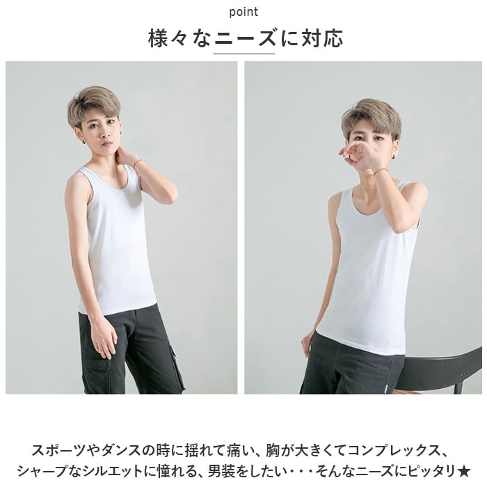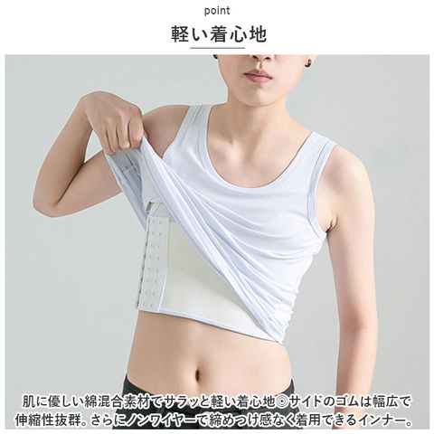 | 商品説明 | バストのボリュームを抑えてくれるナベシャツ。【様々なニーズに対応】スポーツやダンスの時に揺れて痛い、胸が大きくてコンプレックス、シャープなシルエットに憧れる、男装をしたい・・・そんなニーズにピッタリ★【軽い着心地】肌に優しい綿混合素材でサラッと軽い着心地◎サイドのゴムは幅広で伸縮性抜群。さらにノンワイヤーで締めつけ感なく着用できるインナー。【タンクトップタイプ】肩が広めのタンクトップタイプ。長時間着用しても肩が痛くなりにくく、激しい動きも気にならない◎【自分サイズに調節可能】サイドの8連3段ホックで自分サイズに調節が可能。【付けているか分かりづらい】バストを抑えるコルセットはタンクトップの内側サイドに内蔵。より自然なスタイルで過ごせる♪ |
