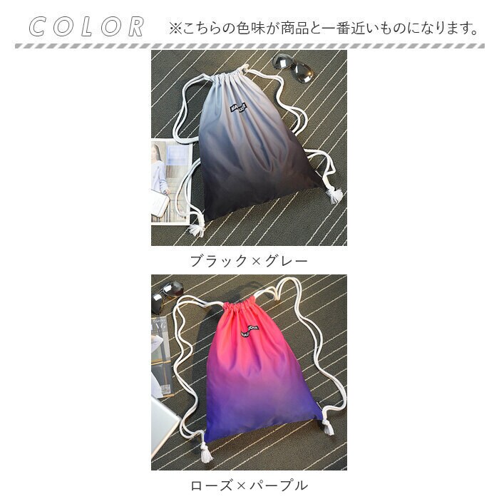 ナップサック ジムサック プールバッグ pmynaps06【ローズ×パープル】