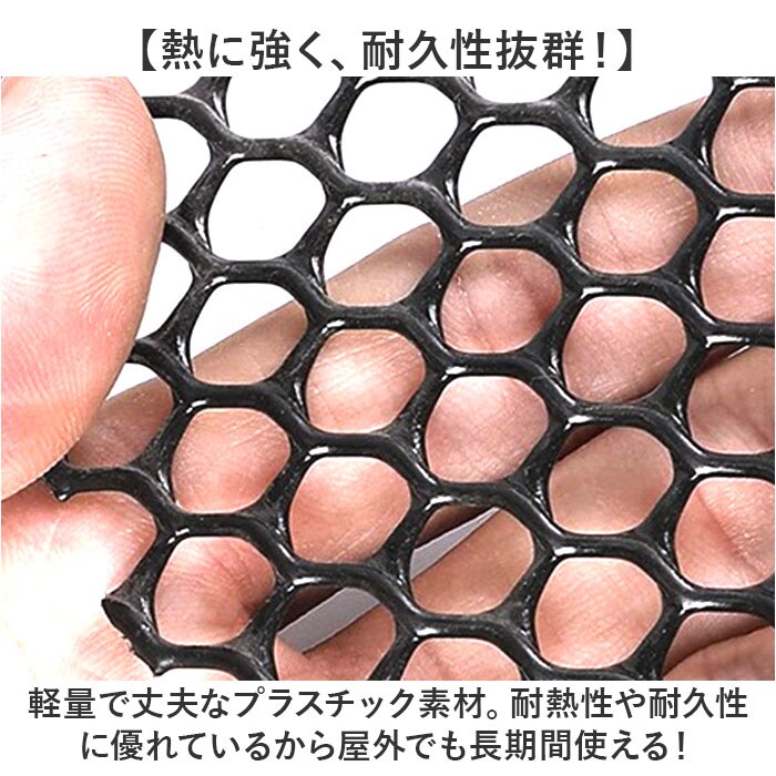 | 商品説明 | 【高所からの落下を防ぐ!】いろいろな場所に簡単に設置できる「フェンスネット 庭 保護ネット 防鳥網」【熱に強く、耐久性抜群!】軽量で丈夫なプラスチック素材。耐熱性や耐久性に優れているから屋外でも長期間使える!【はさみで簡単にカット】使う場所に合わせてハサミで切れるフリーカット仕様。様々な場所や形の物に取り付けOK!【鳥や獣害の侵入防止対策に】ベランダやフェンスに取り付ければ鳥や獣害の侵入防止にも役立つ!【事故防止対策にも◎】ペットの脱走を防いだり、ベランダに置いたプランターなどの落下を防いでくれる便利なアイテム |