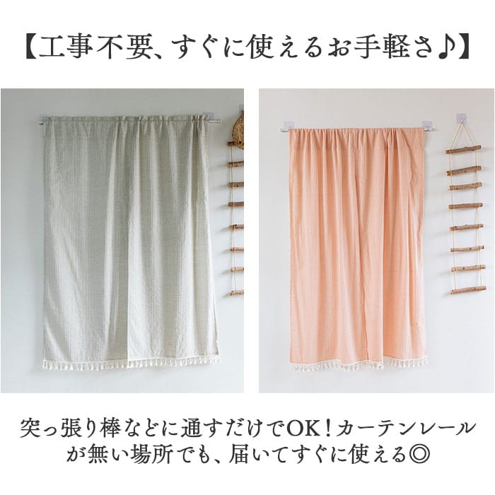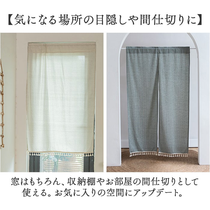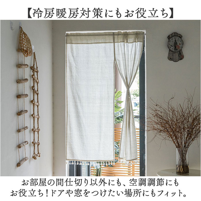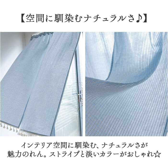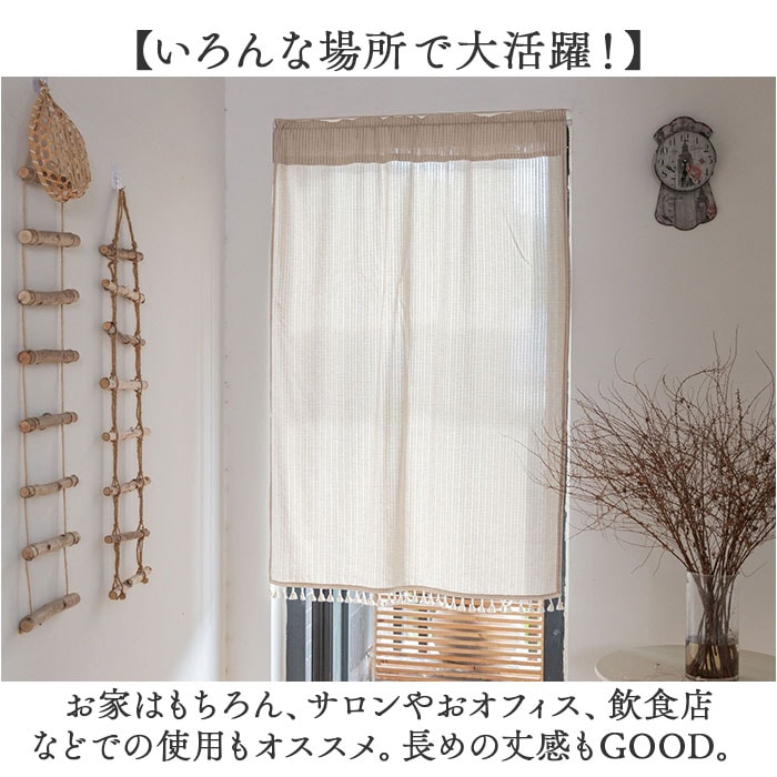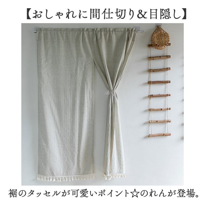 | 商品説明 | 【おしゃれに間仕切り&目隠し】裾のタッセルが可愛いポイント☆ のれんが登場。【空間に馴染むナチュラルさ♪】インテリア空間に馴染む、ナチュラルさが魅力のれん。ストライプと淡いカラーがおしゃれ☆【気になる場所の目隠しや間仕切りに】窓はもちろん、収納棚やお部屋の間仕切りとして使える。お気に入りの空間にアップデート。【工事不要、すぐに使えるお手軽さ♪】突っ張り棒などに通すだけでOK!カーテンレールが無い場所でも、届いてすぐに使える◎【まるでおしゃれなデザインカーテン】タッセルがポイントのおしゃれデザイン。束ねても、広げても様になる☆【いろんな場所で大活躍!】お家はもちろん、サロンやおオフィス、飲食店などでの使用もオススメ。長めの丈感もGOOD。【冷房暖房対策にもお役立ち】お部屋の間仕切り以外にも、空調調節にもお役立ち!ドアや窓をつけたい場所にもフィット。 |