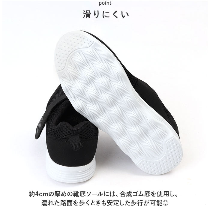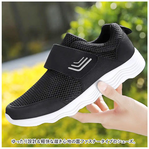 | 商品説明 | ゆったり設計&軽快な履き心地の面ファスナータイプのシューズ。【幅広3E設計】足の幅が広めな日本人に合わせた3E幅広設計。さらに足の甲が高めの方でも履きやすくゆったりしているので、介護やリハビリ、お年寄りのウォーキングシューズとしても活躍。【快適な履き心地】メッシュ素材で柔らかく、通気性抜群。さらに片足約190gと軽量で軽快な履き心地。(※40(25cm)の商品の重量です)さらにインソールは取り外せるので清潔に保てるのが嬉しい。【着脱簡単】面ファスナーで着脱がカンタン!履き口が大きく開き、片手でもスムーズに脱ぎ履き出来る!ジムやランニング用などスポーツ用にもぴったり。【滑りにくい】約4cmの厚めの靴底ソールには、合成ゴム底を使用し、濡れた路面を歩くときも安定した歩行が可能◎【リフレクター付き】面ファスナー部にリフレクター付き。夜道や薄暗い日でも周りへの視認性を高めてくれる♪【ユニセックスで使える】スタイリッシュなフォルムで、23cm~27cmとサイズ展開も豊富なのでユニセックスで使える♪ |