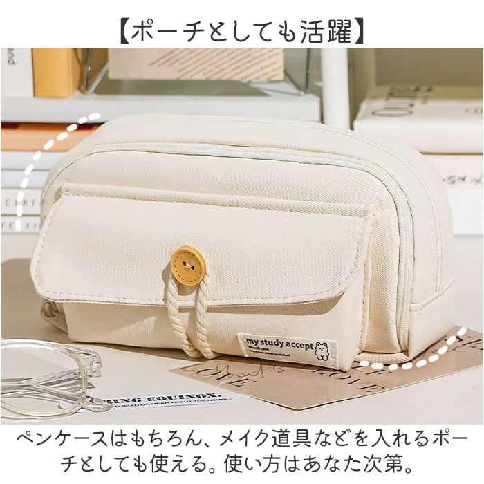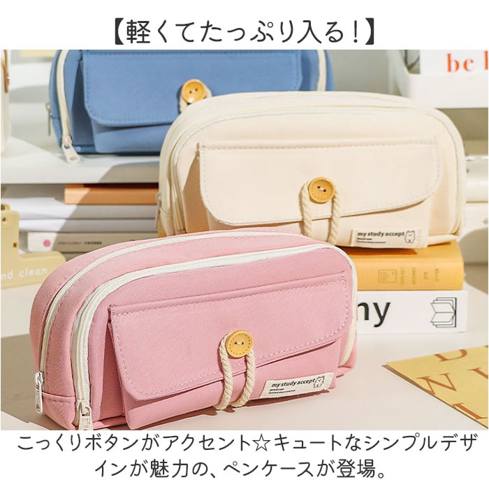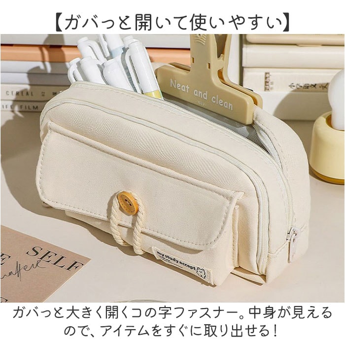 | 商品説明 | 【軽くてたっぷり入る!】こっくりボタンがアクセント☆キュートなシンプルデザインが魅力の、ペンケースが登場。【ポケット&ペンホルダーで整理整頓】メッシュポケットとペンホルダーで、小物を仕分けできる仕様。スッキリ整理整頓できる◎【必要な文具はまるっとひとまとめ】ザクザク入る大容量サイズ。メモや付箋、修正テープなどの必要な文具をまるっとひとまとめ☆【ガバっと開いて使いやすい】ガバっと大きく開くコの字ファスナー。中身が見えるので、アイテムをすぐに取り出せる!【子供から大人まで使える☆】こっくりボタンがキュートなシンプルデザイン。お子様から大人まで使える可愛さ♪【ポーチとしても活躍】ペンケースはもちろん、メイク道具などを入れるポーチとしても使える。使い方はあなた次第。【ギフトにもぴったりの便利アイテム】勉強やお仕事を頑張る方へ、ギフトとして贈るのもオススメ☆きっと喜ばれる!【ポケット仕様】フロント収納:メッシュポケット×1、ペンポケット×1フロント部分:ボタンつきフラップポケット×1 |