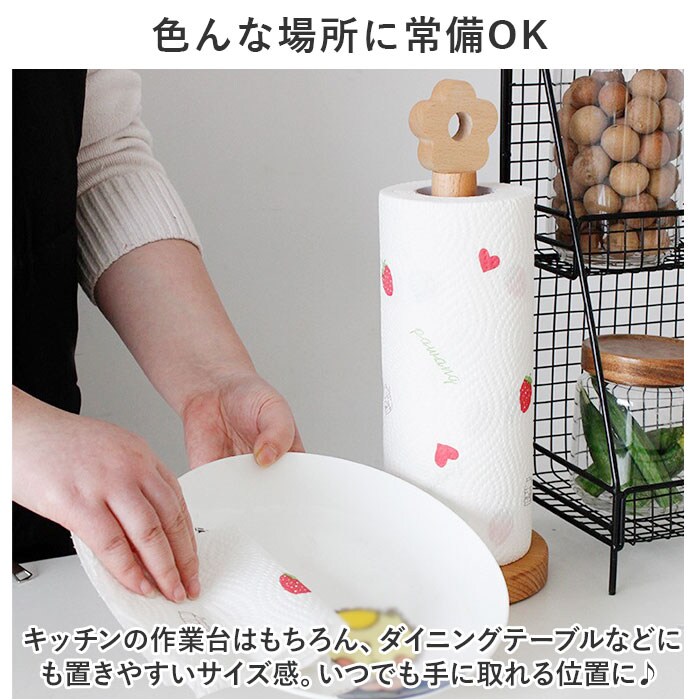 | 商品説明 | キッチンに温かみを♪調理中もペーパーをサッと手に取れる「木製キッチンペーパーホルダー」が新登場。【ナチュラルな仕上がり】自然な風合いを楽しめる木製ホルダー。キッチンの雰囲気を邪魔することなく、空間に素敵にマッチ◎【組み立てはとっても簡単】ホルダー部分をベースのプレートに装着するだけで、あっという間に完成☆工具不要で、誰でも簡単セッティング。【可愛らしいフラワーモチーフ】ホルダー上部にフラワーモチーフをプラスすると、ちょっとしたアクセントに。【色んな場所に常備OK】キッチンの作業台はもちろん、ダイニングテーブルなどにも置きやすいサイズ感。いつでも手に取れる位置に♪【安心の滑り止め付き】ベースの底面四隅にクッション材を配置。滑りや傷つきをガード。【キッチンにお気に入りアイテムを】モチベーションが上がらない日も、お気に入りのアイテムに囲まれることでテンションアップ☆ |
