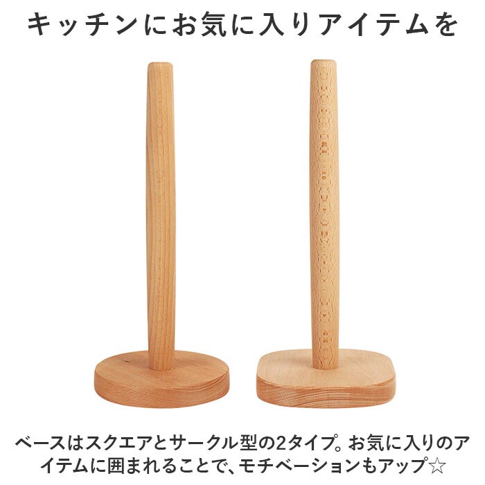 | 商品説明 | キッチンに温かみを♪調理中もペーパーをサッと手に取れる「木製キッチンペーパーホルダー」が新登場。【ナチュラルな仕上がり】自然な風合いを楽しめる木製ホルダー。キッチンの雰囲気を邪魔することなく、空間に素敵にマッチ◎【組み立てはとっても簡単】ホルダー部分をベースのプレートに装着するだけで、あっという間に完成☆工具不要で、誰でも簡単セッティング。【色んな場所に常備OK】キッチンの作業台はもちろん、ダイニングテーブルなどにも置きやすいサイズ感。いつでも手に取れる位置に♪【安心の滑り止め付き】ベースの底面四隅にクッション材を配置。滑りや傷つきをガード。【キッチンにお気に入りアイテムを】ベースはスクエアとサークル型の2タイプ。お気に入りのアイテムに囲まれることで、モチベーションもアップ☆ |
