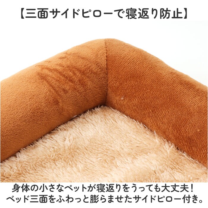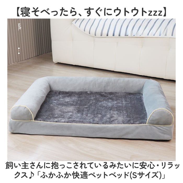 | 商品説明 | 【寝そべったら、すぐにウトウトzzz】飼い主さんに抱っこされているみたいに安心・リラックス♪「ふかふか快適ペットベッド(Sサイズ)」【包みこまれるような安心感】ペットがコロンと丸まってくつろげる、ふわふわクッションで周りを囲んだソファベッドタイプ。【高反発スポンジが快適さのヒミツ】ベッド中央にぽこぽこと凹凸のある高反発素材を内蔵。ペットの身体の重みを分散し快適な眠りに導く♪【そっと触れるだけで癒される】ペットのデリケートなお腹の肌が触れても安心。ベッド中央はぬいぐるみみたいに暖かなボア素材。【三面サイドピローで寝返り防止】身体の小さなペットが寝返りをうっても大丈夫!ベッド三面をふわっと膨らませたサイドピロー付き。【あご乗せ枕で、すやすやお昼寝】ふっくらサイドピローは滑らかな肌触りのスエード調仕上げなので、あご枕の好きなペットに最適。【小さなペットにも優しいつくり】フロント部分はピローのないフラット形状!小さなペットもちょこんとベッドに乗りやすいつくり。【底面滑り止め加工済み】フローリングの上のベッドにペットが勢いよく飛び込んでも安心。底面は滑り止めドット加工済み。【小型犬やネコちゃんにぴったり】超小型犬から小型犬、丸まってくつろぐのが大好きなネコちゃんに最適!ちょっと小ぶりなSサイズ。【ご家庭でカンタンお洗濯♪】ベッド背面のファスナーからスポンジが取り出せるので、外したカバーは手軽にお洗濯が可能。※優しく手洗いするか、洗濯機をご使用の際は必ず洗濯ネットに入れてお洗濯してください。【イタズラ防止、ファスナーガード】ペットがファスナーを自分で開けたり、イタズラをしないよう、開口部にはファスナーガード付き。【ペットケージに最適サイズ】フロアやソファにそのまま敷いて使えるのはもちろん、ペットケージの中にも設置できるサイズ感。【猫ちゃんもワンちゃんもくつろげる】母猫・母犬の懐に抱かれたようにすやすや快適なペットベッド。真冬の防寒や冷房の冷え対策に! |