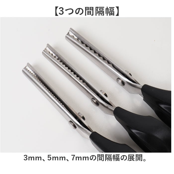 | 商品説明 | 【2パターン3サイズから選べる】レザークラフトなど手芸に便利なピンキングはさみが新発売♪【2パターンの刃型】ギザギザな三角形と波線のような円形に切れる2パターンの刃型。【3つの間隔幅】・3mm、5mm、7mmの間隔幅の展開。【厚い革や紙もスパッと切れる】ステンレス製の本格的なはさみなので厚い素材も綺麗に切れるのも嬉しいポイント。【握りやすいグリップ】グリップ部分は大きく握りやすい形で長時間の使用も楽ちん♪【アクセントにも】ラッピング袋やリボンの縁に使ってアクセントに使うのもオススメ♪ |