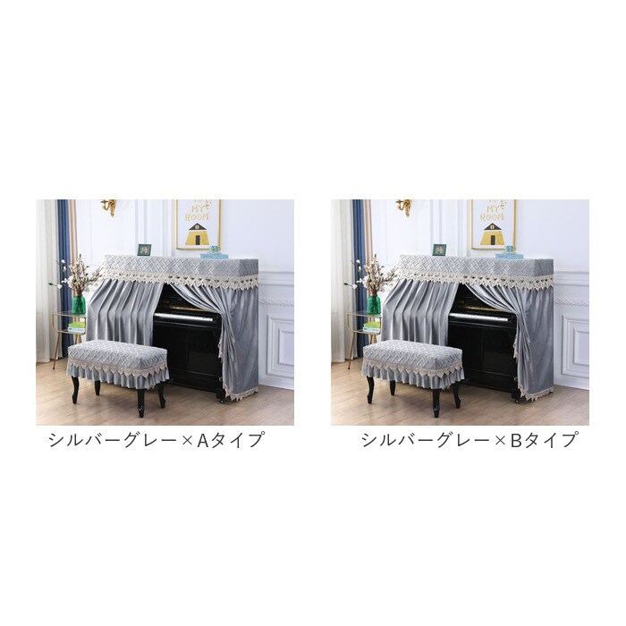 ピアノカバー チェアカバー pmypianocover14【シルバーグレー×Bタイプ】