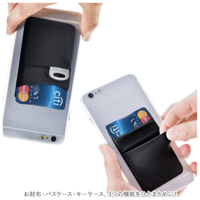 | 商品説明 | 貼るだけで簡単!スリムでかさばらない「スマートフォン用カード収納ポケット」が新登場。色鮮やかなファブリックが目を惹く♪スマホ背面に貼り付けるタイプの簡単スマホポケット。柔らかなマイクロファイバー製のポケットに、2枚分のクレジットカードや交通系ICカードをミニマルに収納可能。カードポケット裏側の保護シールを剥がして、お使いのスマホケース背面に貼り付けるだけですぐに使えるのも嬉しいポイント。(※3M製の強力な粘着シールを使用しています。スマホケース表面に貼り付けてご使用ください。)ストレッチの効いた生地を使用しているので、カードの他にも折りたたんだ紙幣や鍵、束ねたイヤホンケーブルなどを収納してもOK!このポケットをスマホに貼りつけるだけで、キャッシュレス決済用のお財布、パスケースにキーケース、3つの機能をひとまとめに!ベーシックからビビッドまで、スマホ本体の色味に合わせて選べる豊富なカラーバリエーションも魅力のひとつ。 |