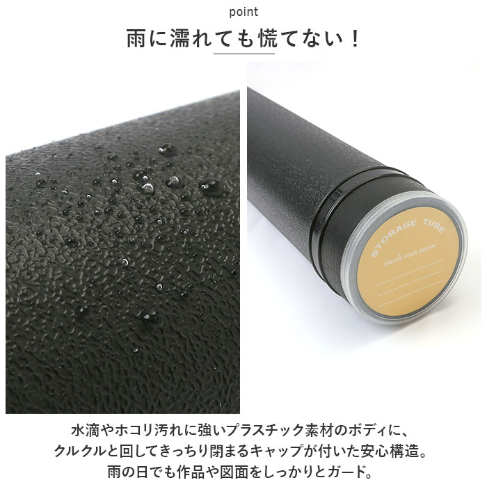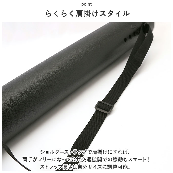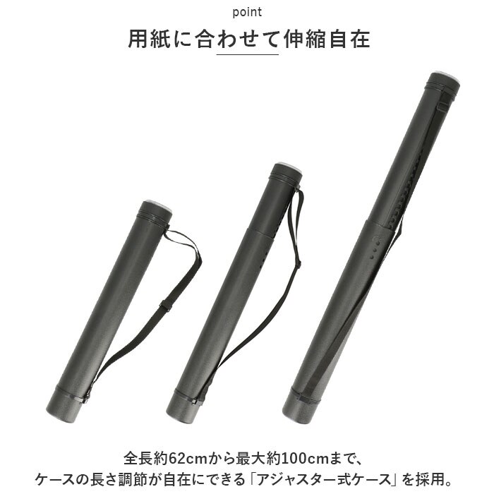 | 商品説明 | アート作品や建築図面がスマートに持ち歩ける!軽量&ビッグなポスターケースが新登場。【用紙に合わせて伸縮自在】全長約62cmから最大約100cmまで、ケースの長さ調節が自在にできる「アジャスター式ケース」を採用。【大判規格サイズにも対応】A1サイズ、B1サイズ、A0サイズなど、大判サイズのポスターや図面、模造紙なども折り曲げずにラクラク収納可能。【雨に濡れても慌てない!】水滴やホコリ汚れに強いプラスチック素材のボディに、クルクルと回してきっちり閉まるキャップが付いた安心構造。雨の日でも作品や図面をしっかりとガード。【インデックス&透明カバー付き】キャップトップにはインデックスカードがひと目で確認できる透明カバー付き。内側のカードに収納物の詳細を書き込むことができ、作品の管理がグッと楽に。【らくらく肩掛けスタイル】ショルダーストラップで肩掛けにすれば、両手がフリーになって公共交通機関での移動もスマート!ストラップ長さは自分サイズに調整可能。【お仕事から推し活までマルチに活躍】プレゼン資料や図面の持ち運びにはもちろん、お子さまの絵画作品や賞状、推しアイドルのポスターの保管まで、様々な用途に大活躍。 |