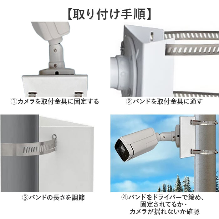 | 商品説明 | 【屋内外使える】防犯カメラ用の金具ベルトが新発売♪(単品売り)【オールウェザー対応】防さび加工と静電気防止加工が施されており、屋外の使用でも長持ち♪【安心の金具タイプ】ベルトは金属製で丈夫さも。重みのあるカメラもしっかり固定可能。【様々なシーンで】壁や柱などに穴を開けずに設置可能!円柱などの柱以外にも格子や金網フェンスに設置もOK!【簡単に設置が可能】特殊な工具は必要なく、ドライバー1本で設置。取り付けもバンドを通して締めるだけ◎【マルチに使える】最大直径約11.2cmまで対応。大きな防犯カメラの取り付けにも使える! |