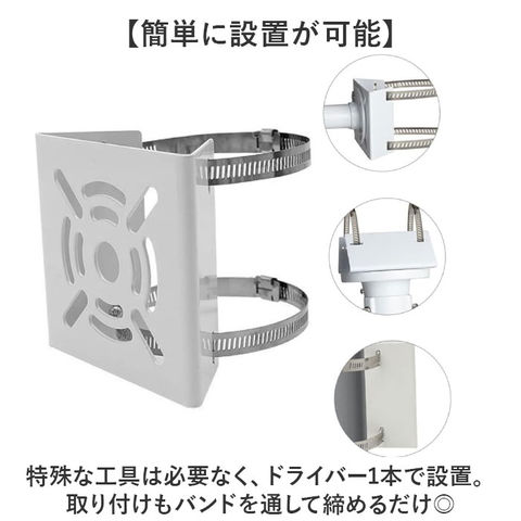| サイズ | 【ポール取付け金具】 ・直径10cm ・直径20cm 【カメラ取付け部分(共通)】 [縦]約10.5cm/[横]約10.5cm/[奥行]約4.5cm ※サイズは当店計測の実寸サイズです。実際の商品ならびにメーカー表記サイズとは多少の誤差が生じる場合がございます。あらかじめご了承ください。 |