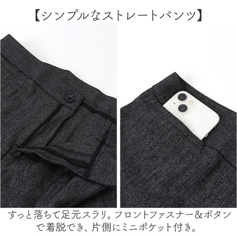 | 商品説明 | 【通勤やフォーマルシーンで活躍】使い勝手の良いベーシックデザイン。長く愛用できる、レディース用「ビジネススーツ」。【上品なキレイめスタイルが完成】シンプルできちんと感のあるジャケット&パンツ。年代問わず着用しやすい仕上がり。【すっきりフォルムのジャケット】肩パッドでシルエットをキープ&エレガントなラペルデザイン。スリムに魅せる絶妙な仕立て♪【ベーシックなシングルタイプ】フロントボタンを1つ配置し、スマートな印象を演出。左右にはフラップポケットを。(※)ポケットはご自身で糸を取ってご使用ください。胸ポケットはフェイクです。【シンプルなストレートパンツ】すっと落ちて足元スラリ。フロントファスナー&ボタンで着脱でき、片側にミニポケット付き。【ロングシーズン使える万能アイテム】薄すぎず厚すぎない程よい生地感。ジャケットは裏地付で着用時のムレを軽減、摩擦からも保護。【インナー次第でおしゃれ上級者♪】デザイン性のあるブラウスなどで遊べば、グンと垢抜け!シーンに合わせて楽しめる☆【お子さまの学校行事にもおすすめ】フォーマルシーンにも馴染むデザイン。お子さまの入学・卒業式への参加もOK! |