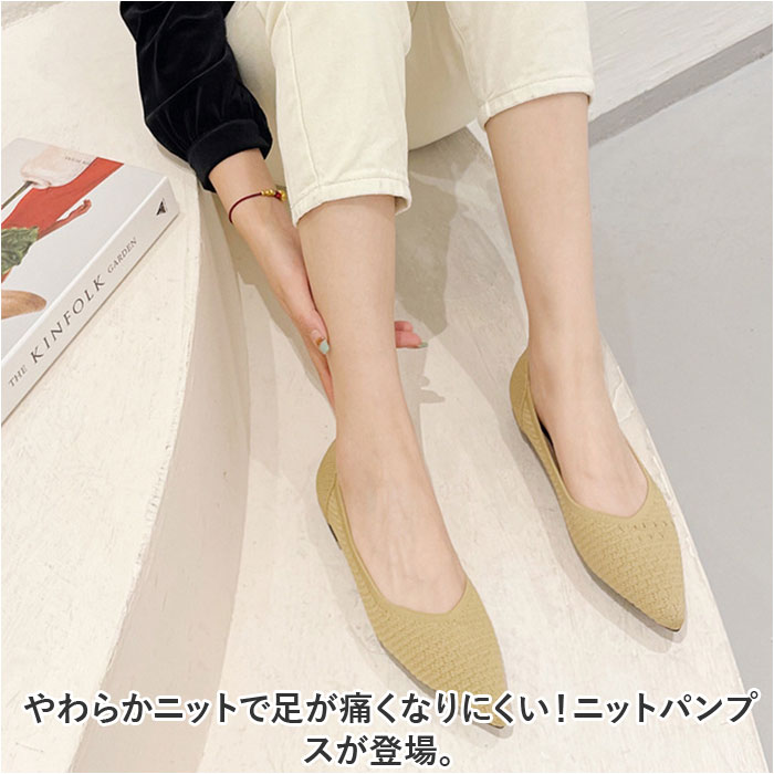 パンプス ニット フラット pmyqg4【ベージュ】【39(24.5cm)】