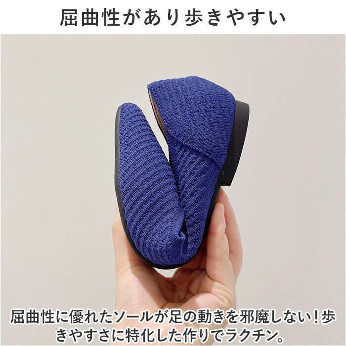 | 商品説明 | やわらかニットで足が痛くなりにくい!ニットパンプスが登場。【柔らかくフィットするニット素材】ニット生地がやわらかく足にフィットする履き心地。痛くなりにくいパンプスをお探しの方へ♪【ぺたんこでシャープなシルエット】ボリュームを抑えたぺたんこでシャープなシルエットが大人っぽい。ヒールなしでも上品な印象。【ニットの編み目でこなれ感を演出】ニットの編み目で見せる表情が魅力。シンプルだけどちゃんとこなれ感のある足元に仕上がる。【屈曲性があり歩きやすい】屈曲性に優れたソールが足の動きを邪魔しない!歩きやすさに特化した作りでラクチン。【優しいクッションインソール】足裏に優しくフィットする、クッションインソール。負担を軽減してくれるので疲れにくい。【ロングシーズン使用できる】ソックスもタイツも素足もOKなので、ロングシーズン使用できる。ひとつあると大活躍! |