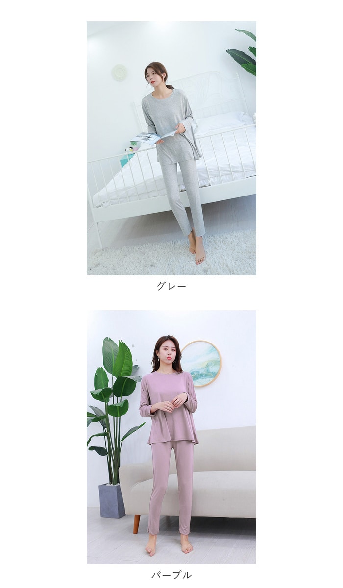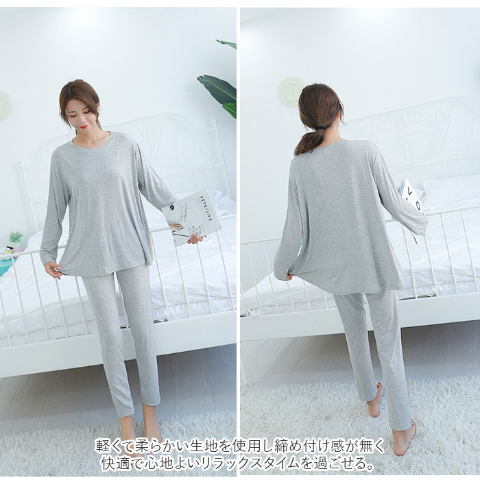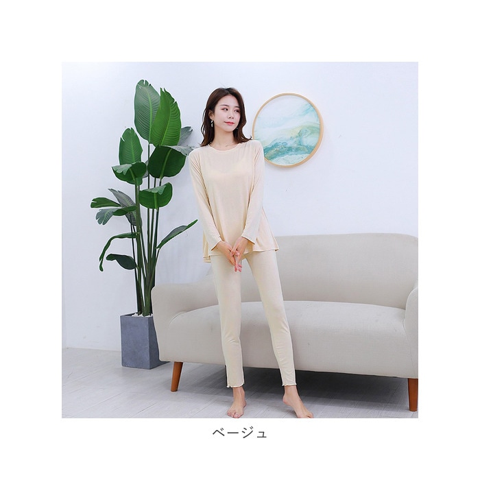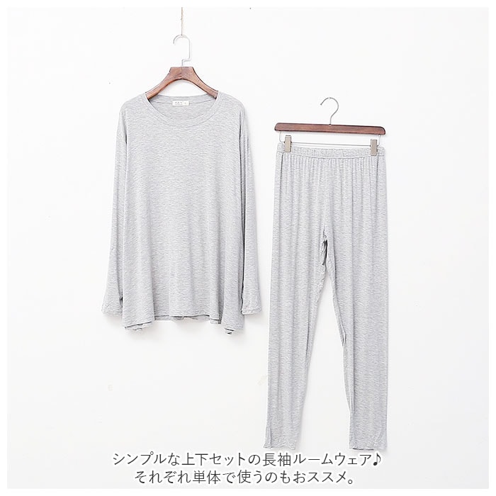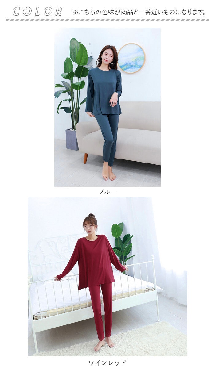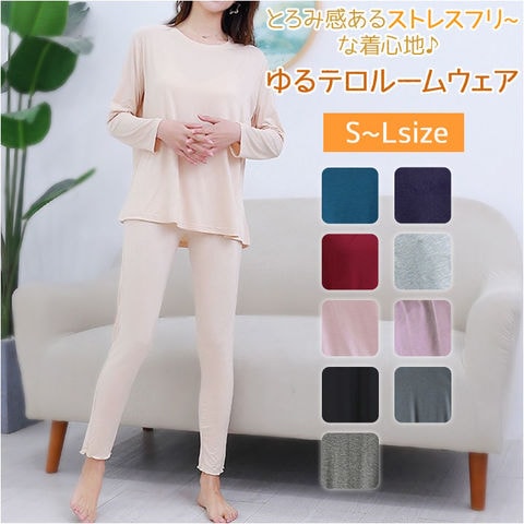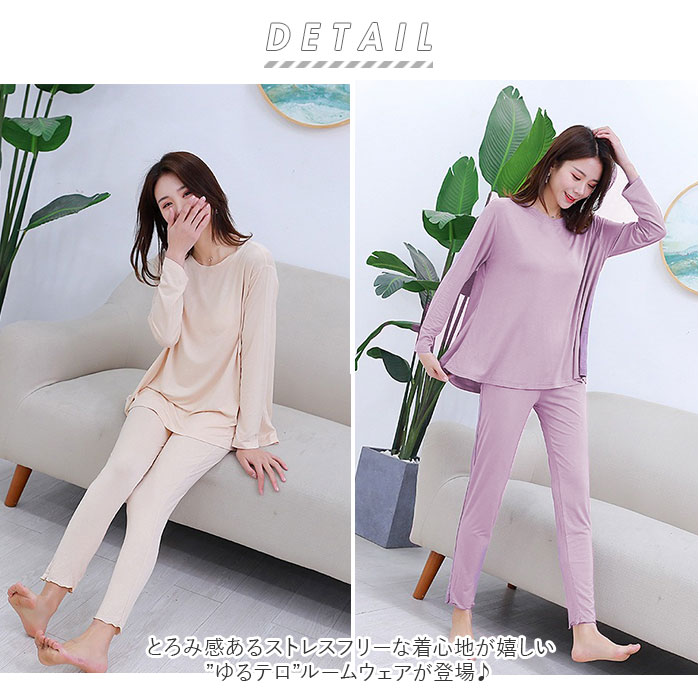 | 商品説明 | とろみ感あるストレスフリーな着心地が嬉しい”ゆるテロ”ルームウェアが登場♪シンプルな上下セットの長袖ルームウェア♪それぞれ単体で使うのもおススメ。軽くて柔らかい生地を使用し締め付け感が無く、快適で心地よいリラックスタイムを過ごせる。ウエストは平ゴム仕様でお腹まわりが苦しくなりにくいのも嬉しいポイント。薄手の生地でちょっと肌寒い秋や春はもちろん、カーディガンやニットと合わせれば冬でも着こなせるアイテム。 |