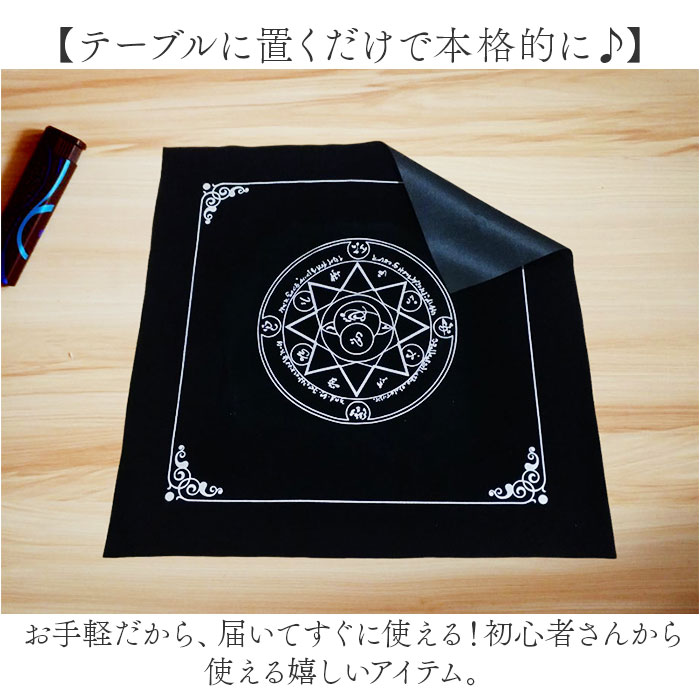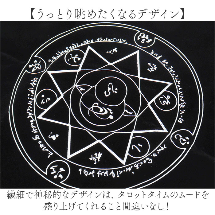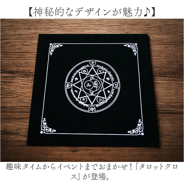 | 商品説明 | 【神秘的なデザインが魅力♪】趣味タイムからイベントまでおまかせ!「タロットクロス」が登場。【うっとり眺めたくなるデザイン】繊細で神秘的なデザインは、タロットタイムのムードを盛り上げてくれること間違いなし!【テーブルに置くだけで本格的に♪】お手軽だから、届いてすぐに使える!初心者さんから使える嬉しいアイテム。【なめらかなフランネル生地を採用】しっとりなめらかな手触りが心地よい、フランネル生地。型崩れがしにくく、長く愛用できる。※裏面に滑り止めは付いておりません。【扱いやすいコンパクトサイズ】折りたたんで持ち運びができる、コンパクトさがGOOD。パーティーやイベント、お出かけ先に◎ |