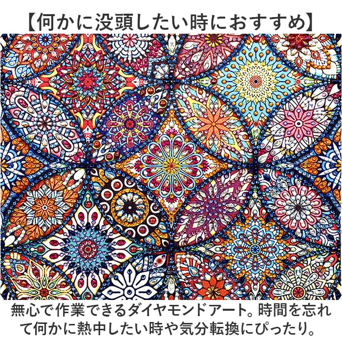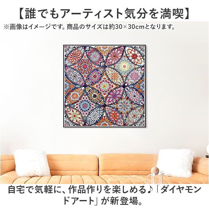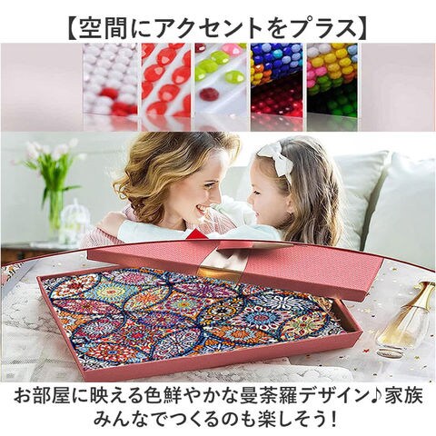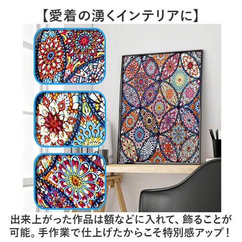 | 商品説明 | 【誰でもアーティスト気分を満喫】自宅で気軽に、作品作りを楽しめる♪「ダイヤモンドアート」が新登場。【初心者さんでも安心◎シンプル設計】ペン先にのりを付けカラービーズを取り、粘着性のある台紙に貼り付け。軽くプレスすれば完成!【決められた色のビーズをON】台紙には英数字が印刷されており、対応するビーズを1つ1つ貼り付けるだけの簡単工程。【愛着の湧くインテリアに】出来上がった作品は額などに入れて、飾ることが可能。手作業で仕上げたからこそ特別感アップ!【何かに没頭したい時におすすめ】無心で作業できるダイヤモンドアート。時間を忘れて何かに熱中したい時や気分転換にぴったり。【空間にアクセントをプラス】お部屋に映える色鮮やかな曼荼羅デザイン♪家族みんなでつくるのも楽しそう! |