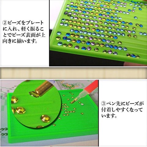 | 注意点 | [付属品]ビーズ x 1セット、トレイ x 1個、ペン x 1個、のり x 1個、チャック式袋 x 21枚海外輸入品のため、商品によってはパッケージや説明書が、英語や中国語表記となっている場合があります。商品を安価でご提供させていただくため、輸入時のパッケージのままでのお届けとなります。予めご了承くださいませ。海外輸入品のため、パッケージに破れ、傷やへこみがある場合がございます。本体には問題ございませんので、予めご了承くださいませ。商品の写真はできる限り実物のお色に近づけるように加工しておりますが、お使いのモニター設定、お部屋の照明などにより、実際の商品と異なる場合がございます。商品や個体差などにより、表記と若干異なる場合がございますが、予めご了承くださいませ。採寸方法の違いにより、多少の誤差がある場合がございます。こちらの商品本体、及び商品についている印字やタグに関しては、海外メーカー独自のサイズ情報や表記になります。実際には、当社にて日本向けに正しい情報をページに掲載させて頂いております。 |