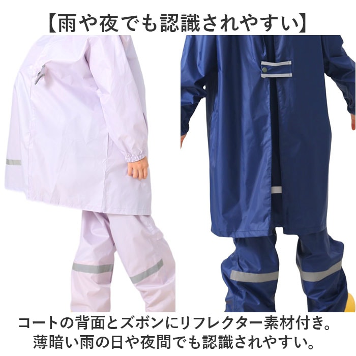 | 商品説明 | 【雨の日の通学も安心♪レインスーツ】しっかり高機能&シンプルなキッズのランドセル対応のレインコートが登場。【ランドセルもすっぽりカバー】上着の背中部分に背マチ付きで余裕を持たせた造り。ランドセルを背負ったまますっぽり。【雨の侵入をブロック】ゴム入りギャザーでフードが左右の頬に、袖口部分は手首にしっかりフィット!パンツの裾部分はボタンを留めて足首回りを調整可能。【自分で着脱カンタン】前開き部分は、ファスナージップタイプでサッと羽織れる。パンツのウエストは総ゴム仕様。学校でお子さまご自身で脱いだり着たりが簡単にできる。【雨や夜でも認識されやすい】コートの背面とズボンにリフレクター素材付き。薄暗い雨の日や夜間でも認識されやすい。【上下セパレートタイプ】上下セパレートタイプなので、足元までしっかりカバー。自転車での通学・通勤にもおススメ★【便利なポイント】上下ともにネームタグやループ付きなので、学校に持って行っても迷子になりにくい。【豊富なサイズ展開】落ち着いたカラーと無地のシンプルなデザインなので、小学生から大人まで使える。【持ち運びに便利な収納袋付き】軽量素材&専用収納袋付き携帯しやすいのも嬉しい。 |