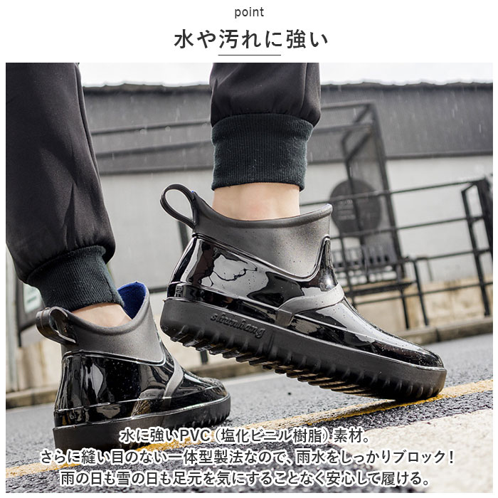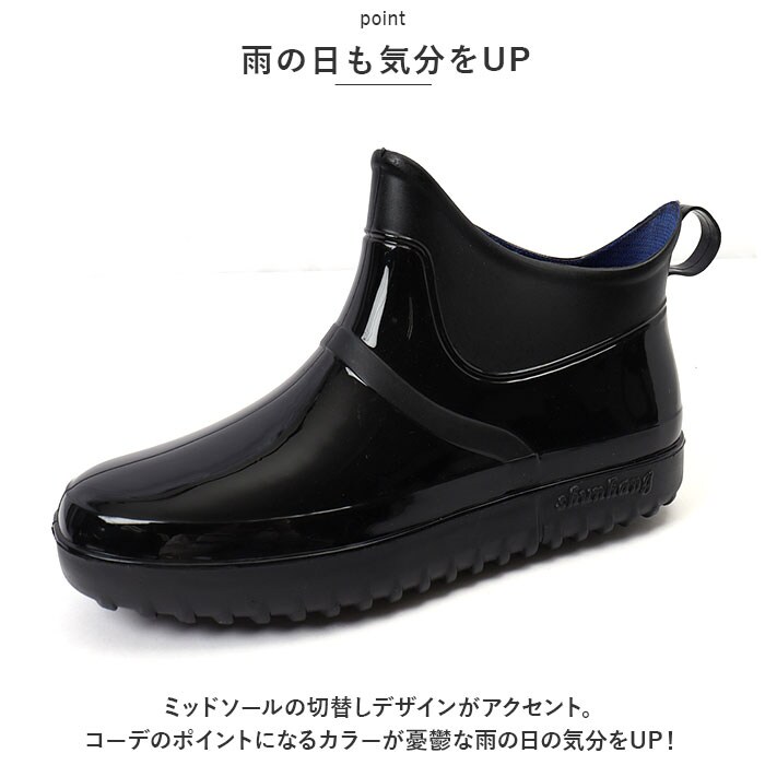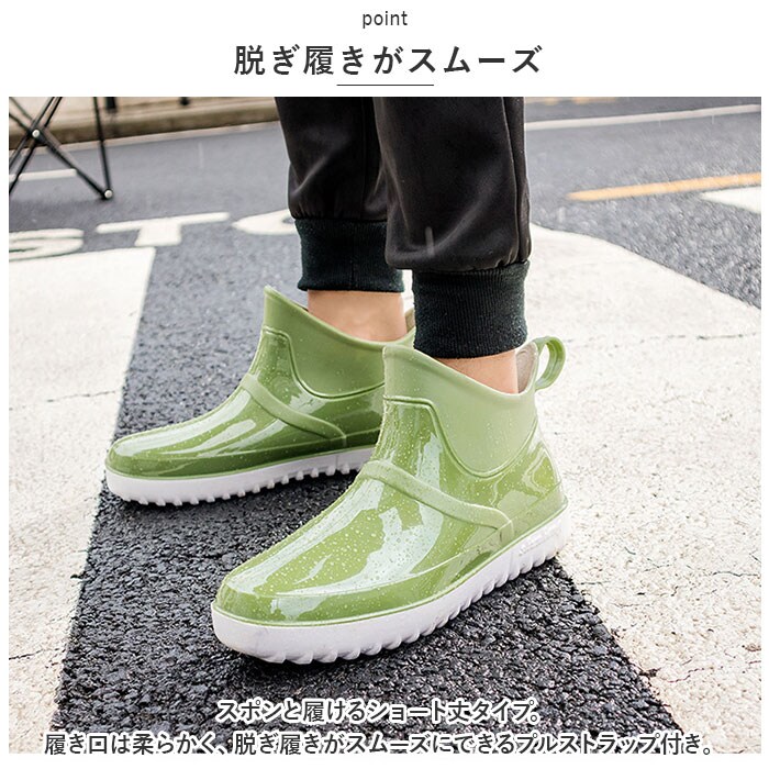 | 商品説明 | 雨の日のお出かけやアウトドアシーンで活躍する、ショート丈のレインブーツ。【水や汚れに強い】水に強いPVC(塩化ビニル樹脂)素材。さらに縫い目のない一体型製法なので、雨水をしっかりブロック!雨の日も雪の日も足元を気にすることなく安心して履ける。【履き心地も快適♪】屈曲性に優れた柔らかな素材なので、履き心地も快適♪【脱ぎ履きがスムーズ】スポンと履けるショート丈タイプ。履き口は柔らかく、脱ぎ履きがスムーズにできるプルストラップ付き。【滑りにくい】靴底には特殊形状の溝があり、濡れた場所でも滑りにくい。【雨の日も気分をUP】ミッドソールの切替しデザインがアクセント。コーデのポイントになるカラーが憂鬱な雨の日の気分をUP!【ガーデニングやアウトドアにも】シンプルデザインで洋服に合わせやすい♪雨の日のお出かけ用だけでなく、ガーデニングやアウトドアにも大活躍。 |