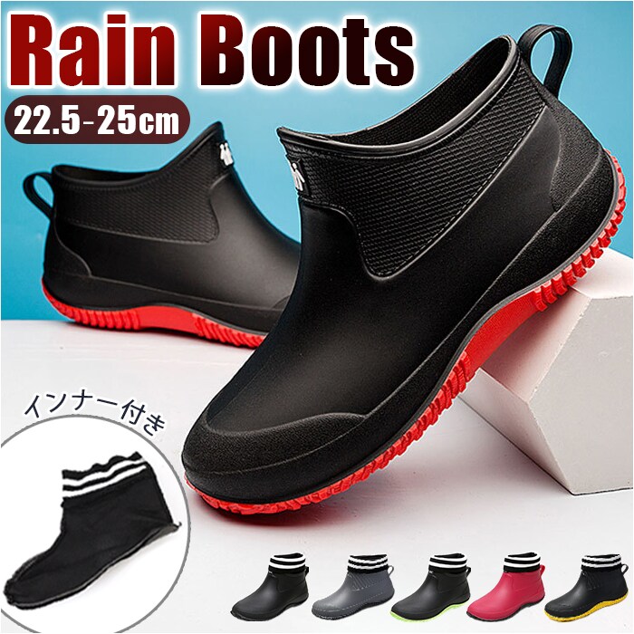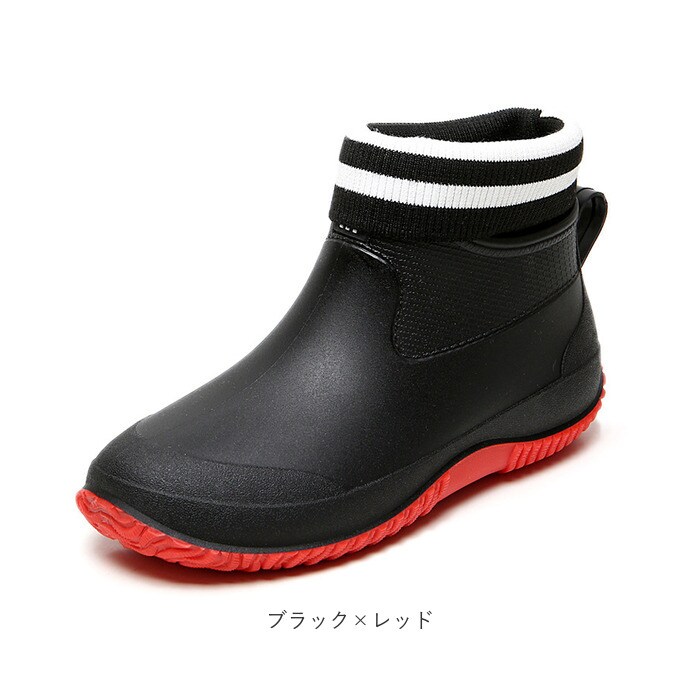 レディースレインブーツ 取り外しできるインナー付き pmyrbi01【ブラック×レッド】【40(25cm)】