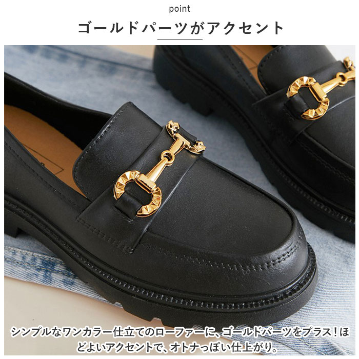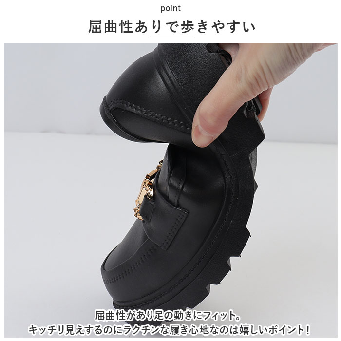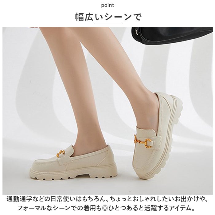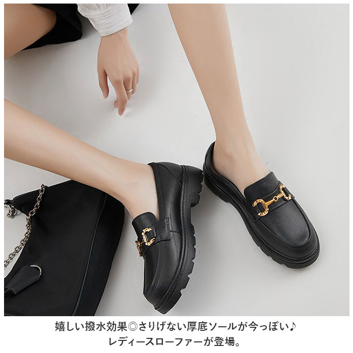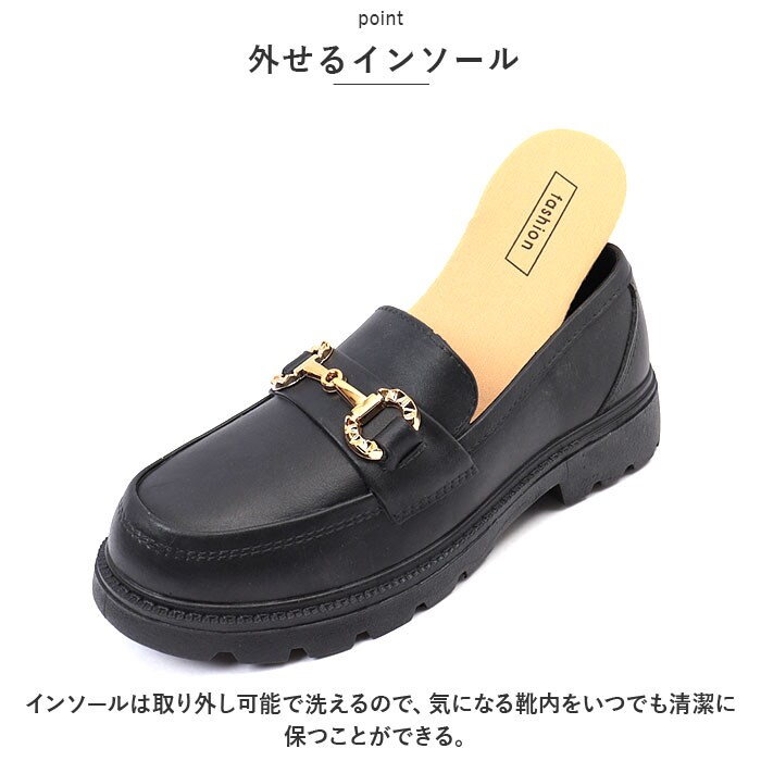| 商品説明 | 嬉しい撥水効果◎さりげない厚底ソールが今っぽい♪レディースローファーが登場。【今っぽさUP☆】約2.5センチのさりげない厚底ソールで足元にボリューム感をON。いつものコーデにプラスするだけでこなれた印象に♪今っぽい足元に仕上がる。【撥水効果◎】PVC素材を使用しているので、撥水効果◎突然の雨でも安心&雨上がりでも気にならない。普段使いにぴったりのローファー。【ゴールドパーツがアクセント】シンプルなワンカラー仕立てのローファーに、ゴールドパーツをプラス!ほどよいアクセントで、オトナっぽい仕上がり。【屈曲性ありで歩きやすい】屈曲性があり足の動きにフィット。キッチリ見えするのにラクチンな履き心地なのは嬉しいポイント!【お洋服に合わせやすい】シンプルかつほどよくカジュアルなので、幅広いコーデにマッチする。スカートにもパンツにも、ソックスでもタイツでも◎【幅広いシーンで】通勤通学などの日常使いはもちろん、ちょっとおしゃれしたいお出かけや、フォーマルなシーンでの着用も◎ひとつあると活躍するアイテム。【外せるインソール】インソールは取り外し可能で洗えるので、気になる靴内をいつでも清潔に保つことができる。 |